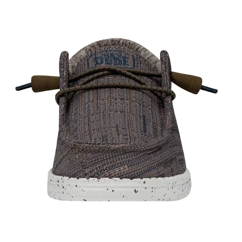 - Woven, polyester-blend upper